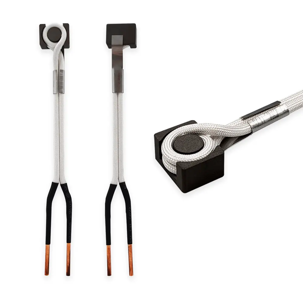 • Paindlik induktiivpool keraamiliste rõngastega parema isolatsiooni tagamiseks. See on mõeldud näiteks teljelaagrite, kinnikiilunud andurite, kuulliigendite ja mitmesuguste muude raskesti ligipääsetavate kohtade lahtiühendamiseks, kus ei ole võimalik kasutada esi- või külgmisi esi- või külgmisi libisevaid induktiivpoole.Lihtsalt mähkige see ümber kuumutatud osa ja ühendage otsad küttekehaga. Kuumutatud osa ümber olevate keermete arv võib mõjutada kuumutamise intensiivsust.